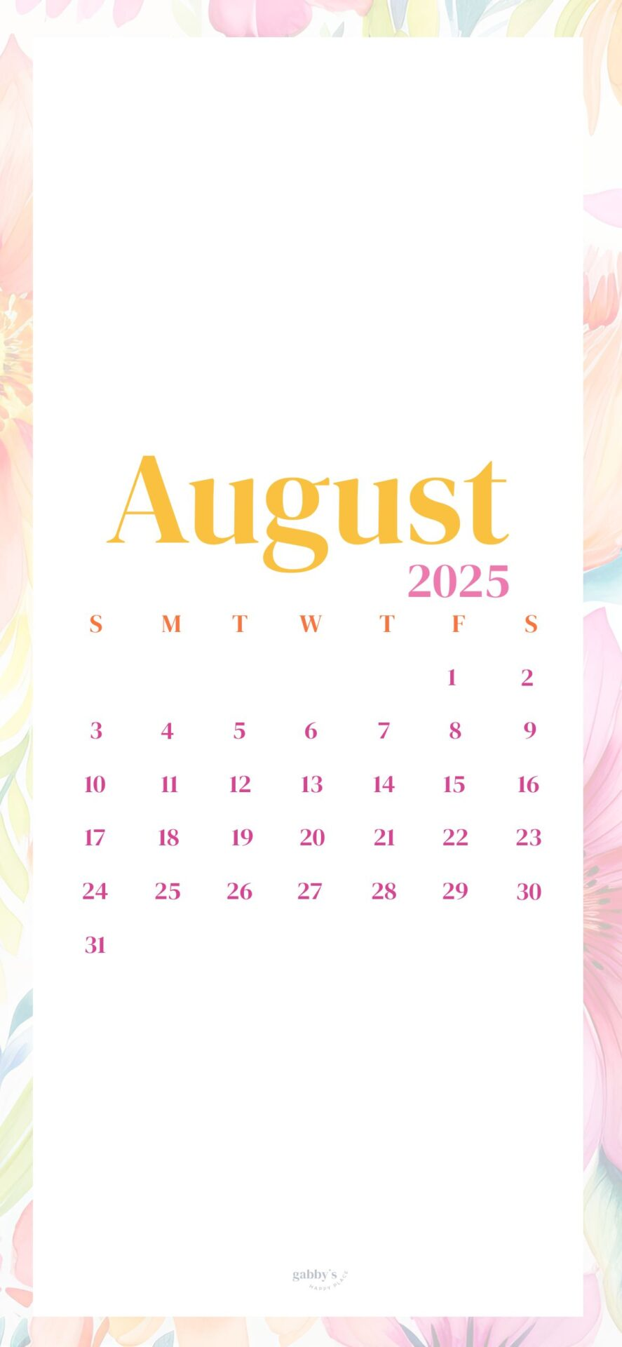With back to school right around the corner, and it’s the perfect time for a fresh phone wallpaper. I put together 6 new August 2025 Calendar Wallpapers, plus 6 undated ones you can use anytime. They’re bright, fun, and full of floral warm vibes—perfect for bringing a little extra summery feeling to your screen. And the best part? They’re totally free, just for you!
