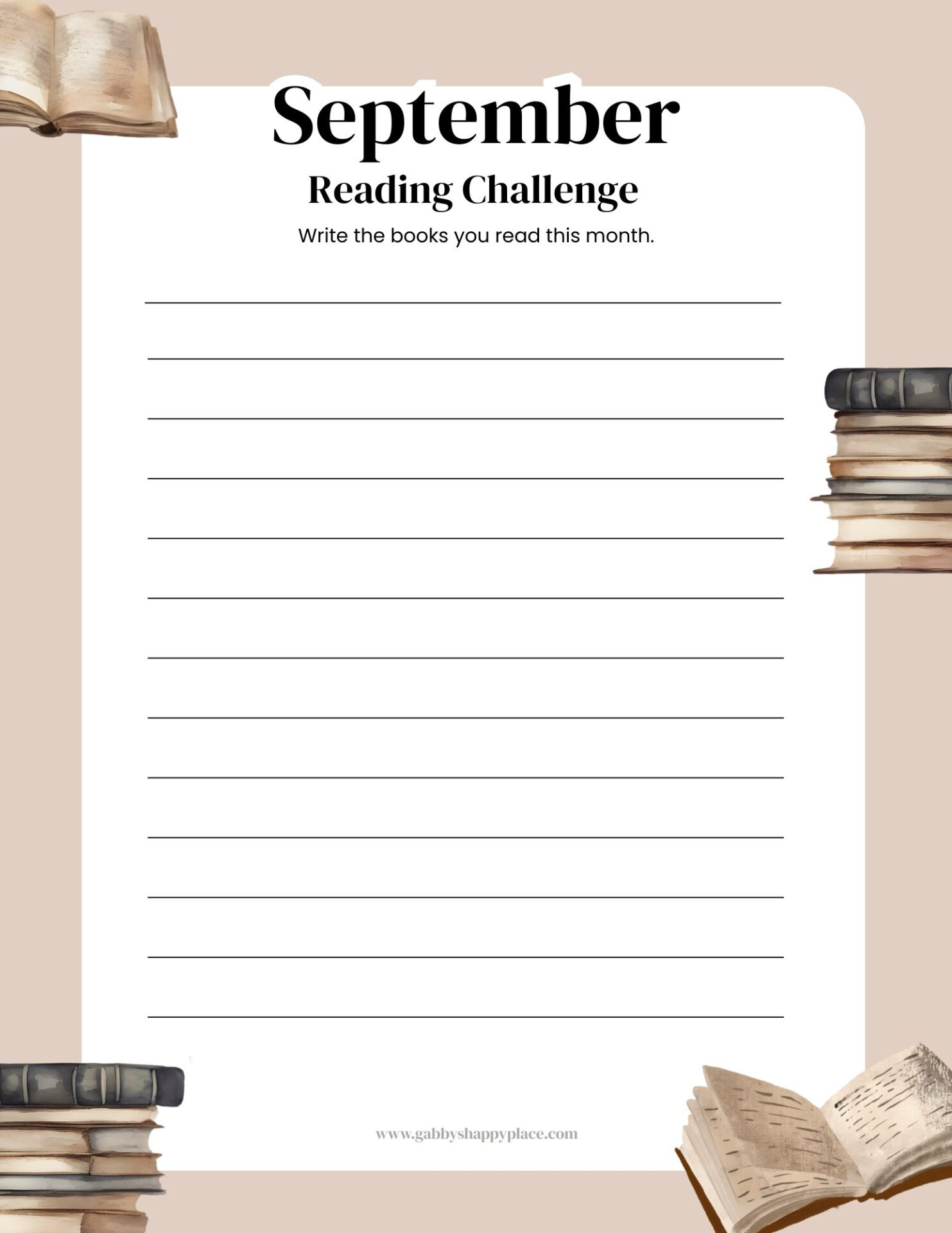 You can always use them digitally, but you can also add them to your reading journal or to have a physical list to check off every day (I find it very rewarding to have a paper to mark every time I accomplish something). Make sure to check out my “September reads” templates to share on your social media so you can keep yourself and your friends accountable. Read every day and conquer the challenge!